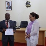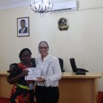 Francisca Aleixo Sebastião é a mais antiga funcionária da ARCCLA com trinta e oito anos de serviço, recebeu das mãos do Ministro dos Transportes Ricardo de Abreu, um diploma de mérito emoldurado como sinal de reconhecimento do seu contributo na edificação da nova agência que ambiciona ser referência nacional e internacional no sector da logística.